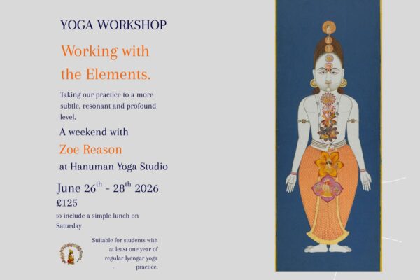Yoga Workshop with Zoe Reason – Working with the Elements. Taking our practice to a more subtle and resonant level.